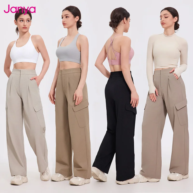 Janya nouveau pantalon de survêtement taille haute pour femme automne hiver vêtements de travail en plein air pantalon multi-poches ample décontracté jambe large sport Cargo pantalon